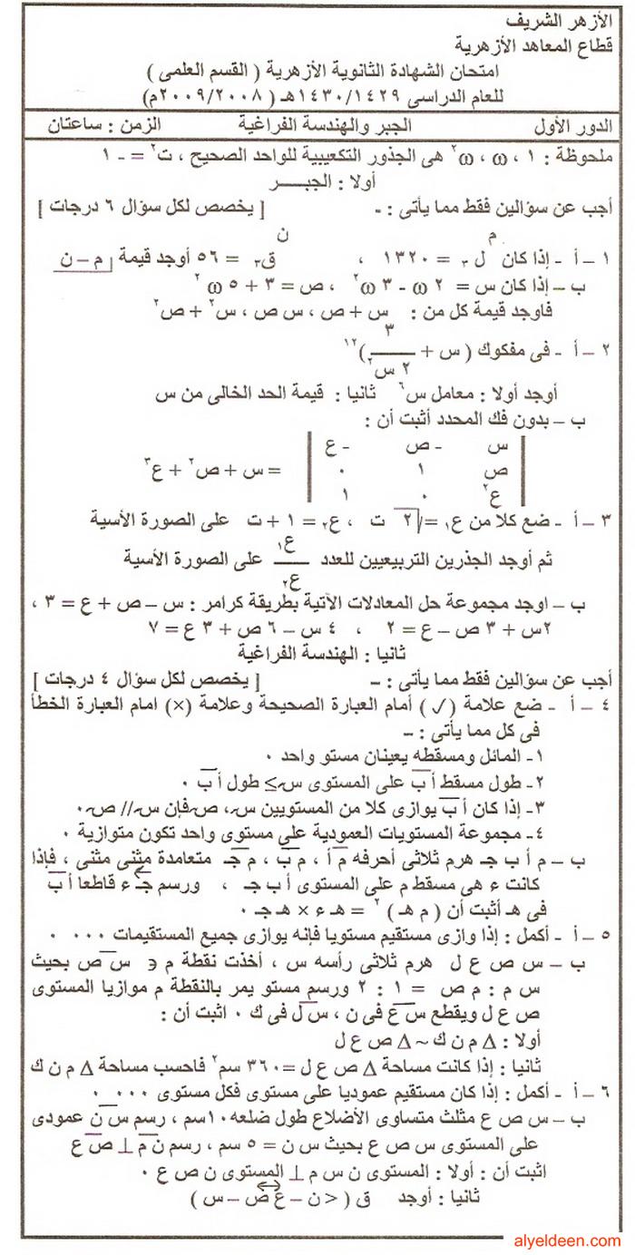 اليكم امتحانات الأزهر لأعوام سابقة فى الرياضيات http://alyeldeen.com/up/do.php?imgf=...3047918291.jpg http://alyeldeen.com/up/do.php?imgf=...3047918292.jpg http://alyeldeen.com/up/do.php?imgf=...3047918293.jpg http://alyeldeen.com/up/do.php?imgf=...3047919361.jpg http://alyeldeen.com/up/do.php?imgf=...3047920181.jpg http://alyeldeen.com/up/do.php?imgf=...3047920182.jpg http://alyeldeen.com/up/do.php?imgf=...3047920183.jpg مع تحياتى للأستاذ الفاضل علي الدين هــــــــــــلال |